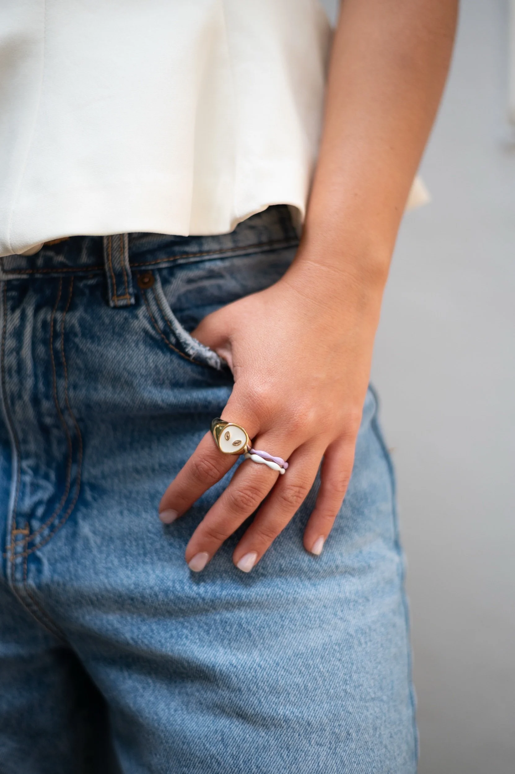 Each piece is uniquely assembled, making every ring one of a kind.