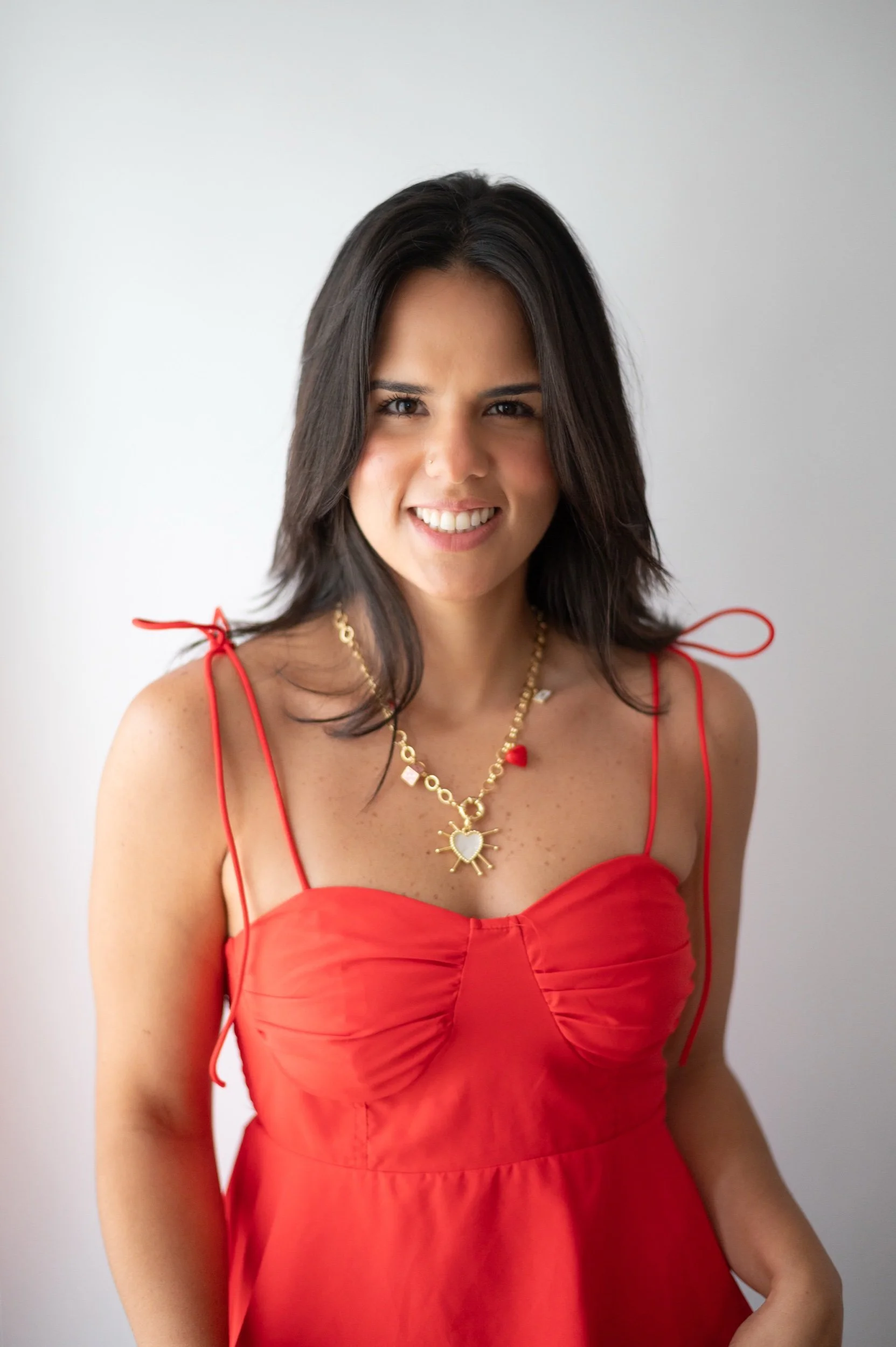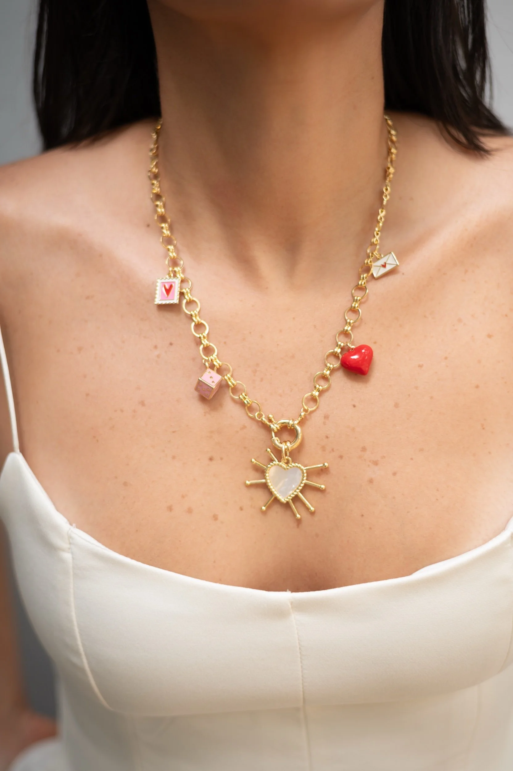 The Lucky in Love Necklace brings together a curated mix of charms designed to feel personal, as if collected over time. At its center, a radiant heart anchors the piece, while delicate enamel details add a sense of story and movement.